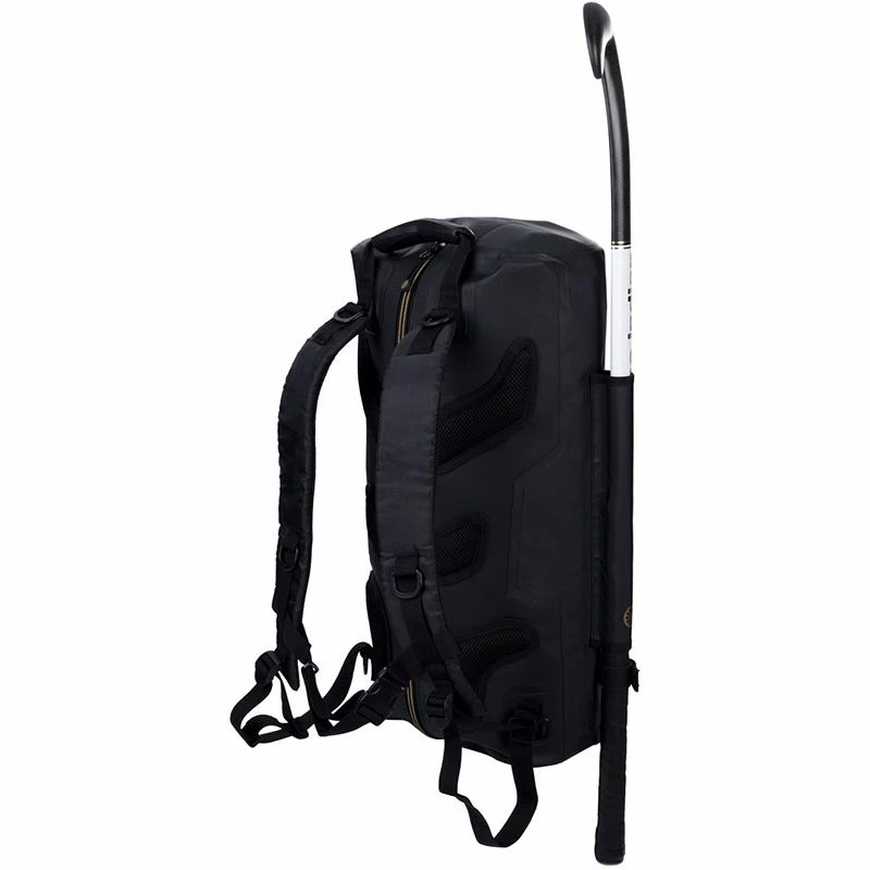 DeΒ Indian Maharadja Backpack Gold TLXΒ is een rugzak uit de Gold serie uit de tassencollectie van The Indian Maharadja. De rugzak heeft een dufflebag model, waardoor hij zeer ruim is en goed stevig. Hierdoor is ook de rits van het hoofdcompartiment niet bereikbaar wanneer de tas op de rug gedragen wordt, waardoor hij een antidiefstal functie krijgt. De tas heeft op de voorzijde twee kleine accessoirezakjes. De tas beschikt over een externe sticksleeve, waarmee je je stick gemakkelijk aan de tas bevestigd. De tas is gemaakt van tarpaulin, wat hem waterdicht maakt en heeft een zeer comfortabele pasvorm dankzij de rugpanelen.Β