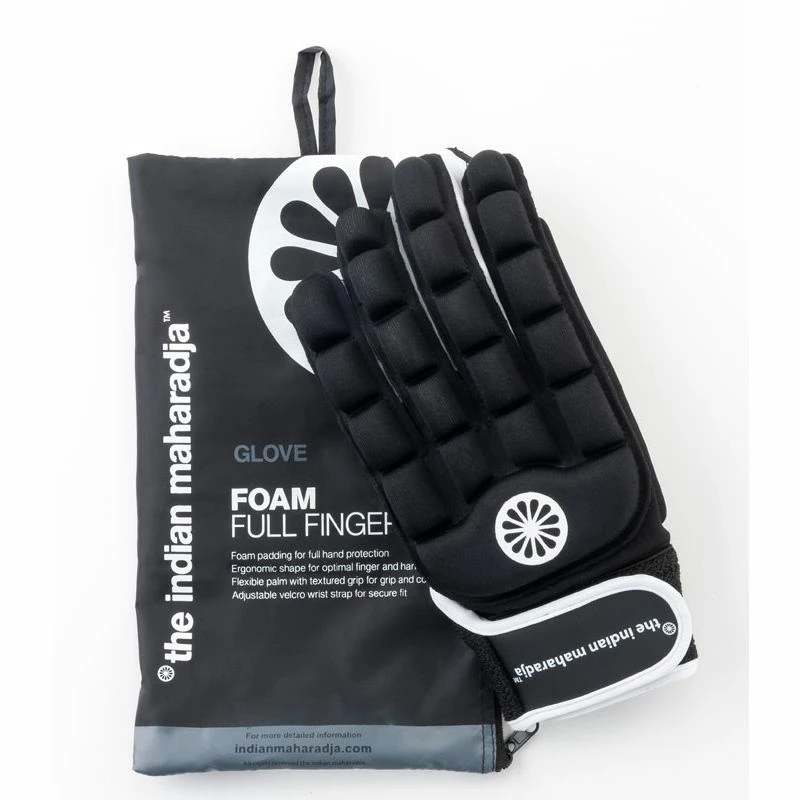 De Indian Maharadja Glove Foam Full Finger Linksย ย is een flexibele protectiehandschoen uit de collectie van Indian Maharadja. Deze handschoen is voorzien van een dikke neopreen voering op de bovenzijde, om de impact van een hockeystick en/of -bal op te kunnen vangen.