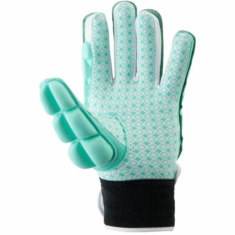 De handschoen bedekt de hele hand en zit comfortabel door de zachte binnenvoering. Bij de pols zit een klittenbandsluiting, voor een perfecte pasvorm. De buigzame handschoen is geschikt voor elk niveau speler en kan zowel indoor als outdoor gedragen worden aan de linkerhand.